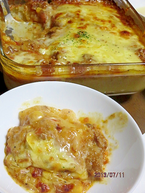 餃子の皮でラクチン あつあつ ラザニア はいかが