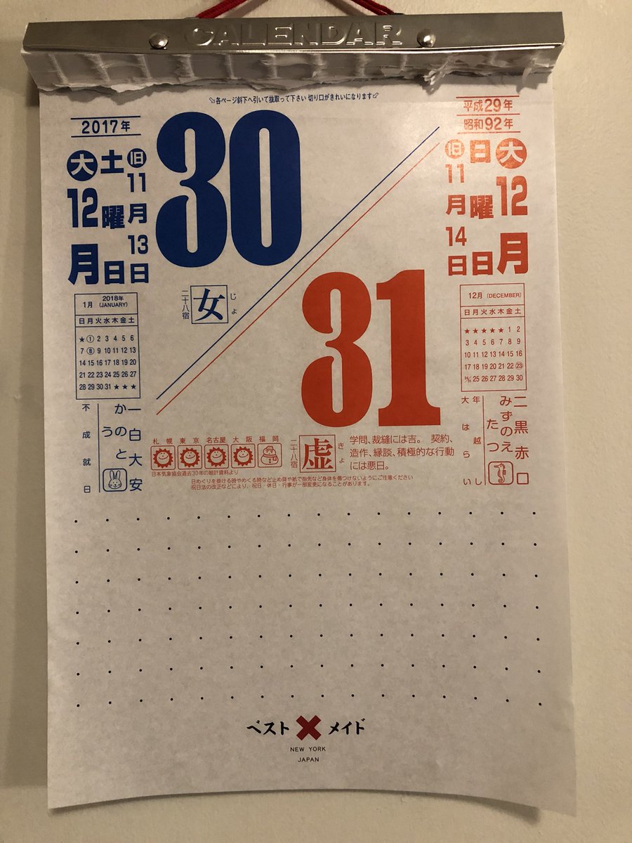 Nick Morgan 17年12月31日 日曜日です 年越しです 大はらいです これは最終カレンダー の写真ですよ 日本のカレンダー